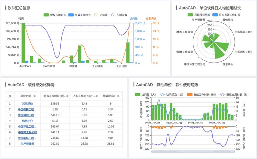 使用場景:在了解各部門的“用時高峰”與“授權緊張”時段后,信息化部門可合理安排項目里程碑或技能培訓,錯峰使用,提高整體系統(tǒng)效率。